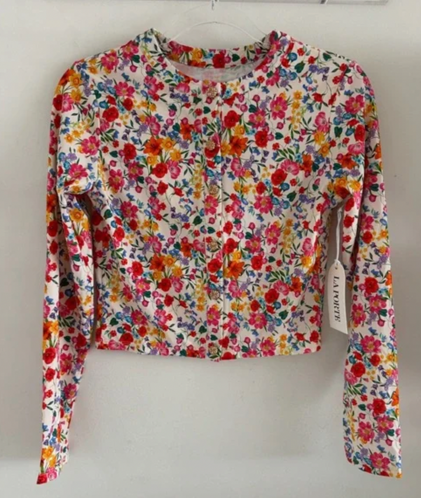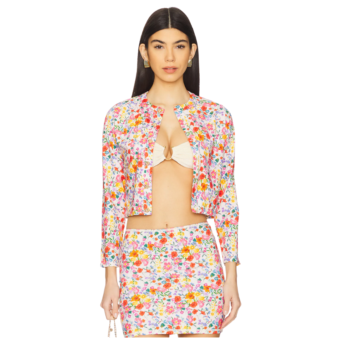 Wear in the water or wear with jeans, this isn't your grandmother's cardigan. Ideally complete the look with the Paige skirt layered over the Kendall Top and Kourtney Bottom in Bubblegum.