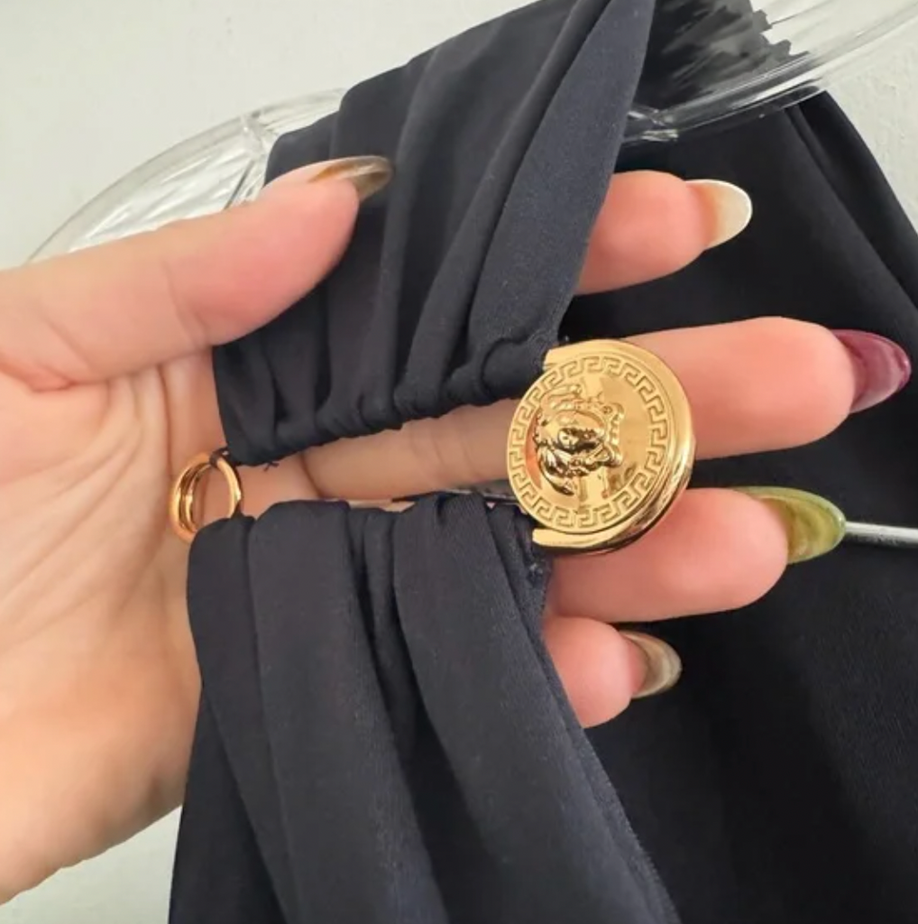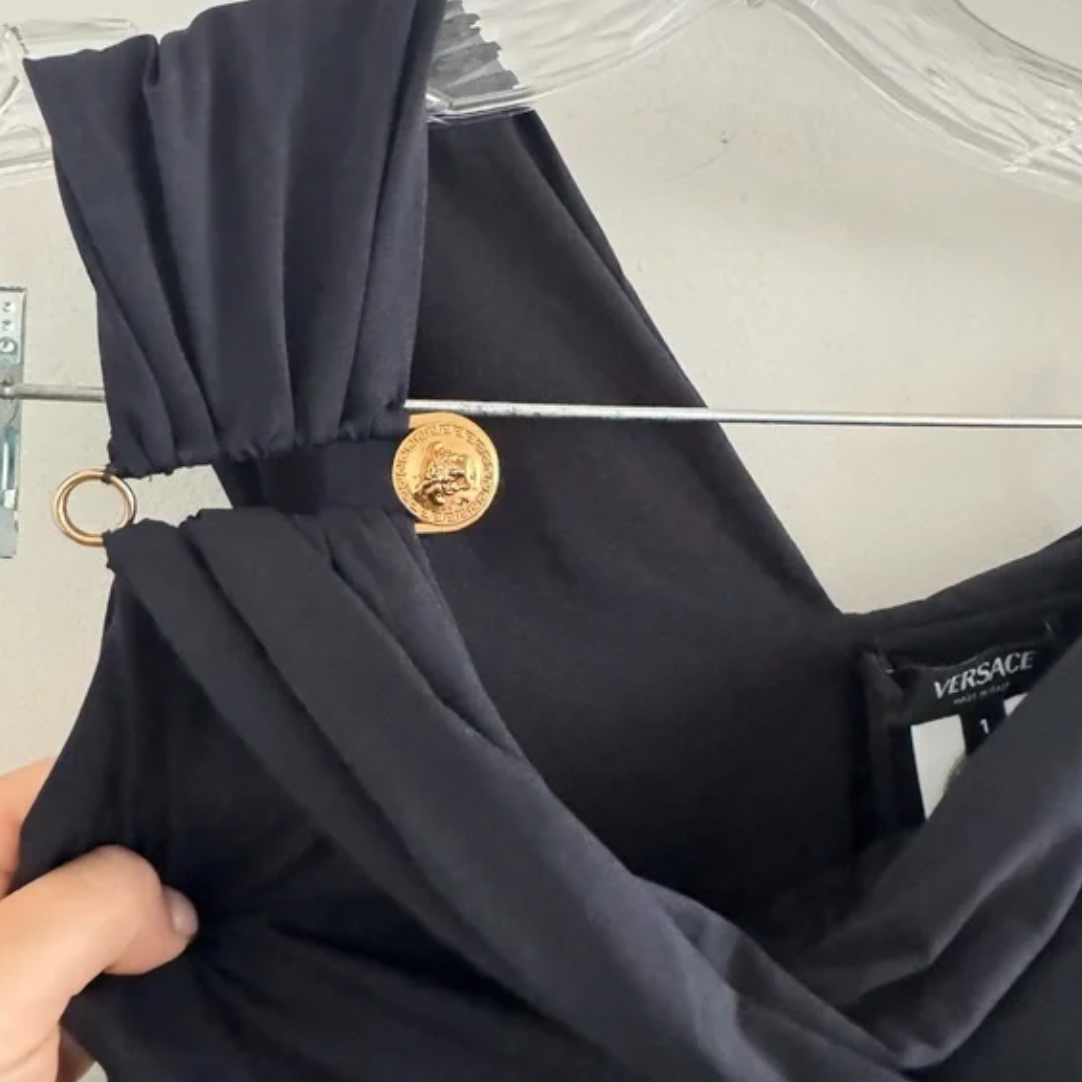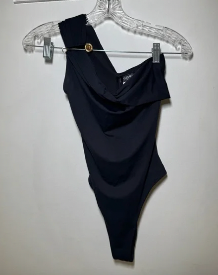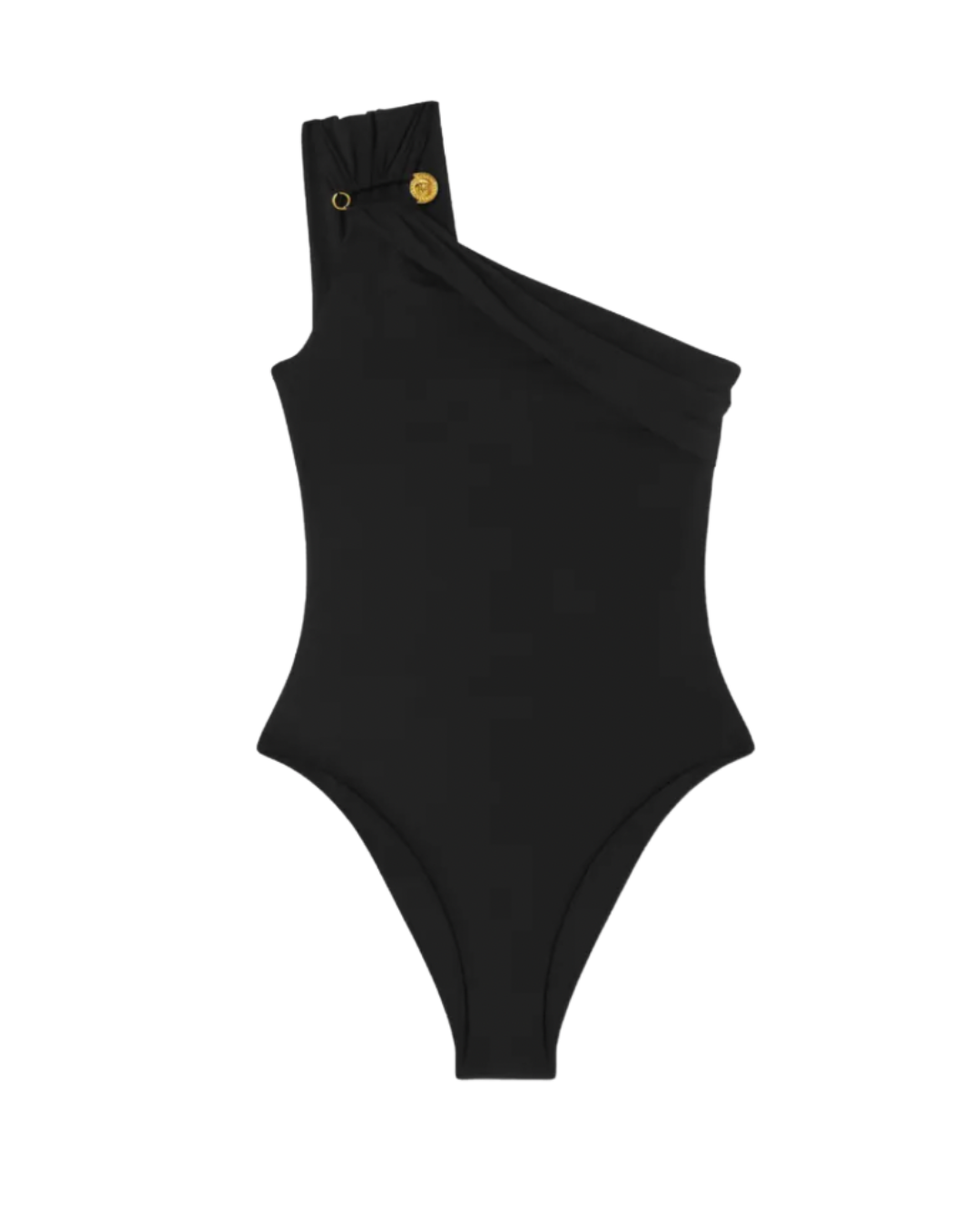 This one-piece swimsuit features the House's signature Safety Pin gathered on the one-shoulder design. For hygiene purposes we advise to try on this item with personal underwear underneath.