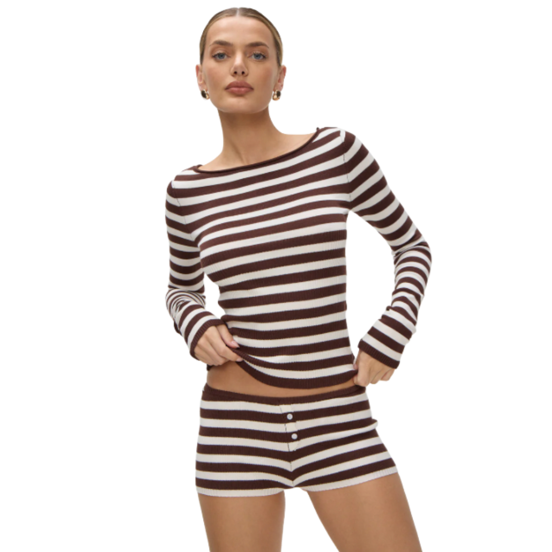 The Bradley booty shorts are the pick of the season. With their mini short design, striped pattern, and cozy knit comfort, you'll never want to take them off.