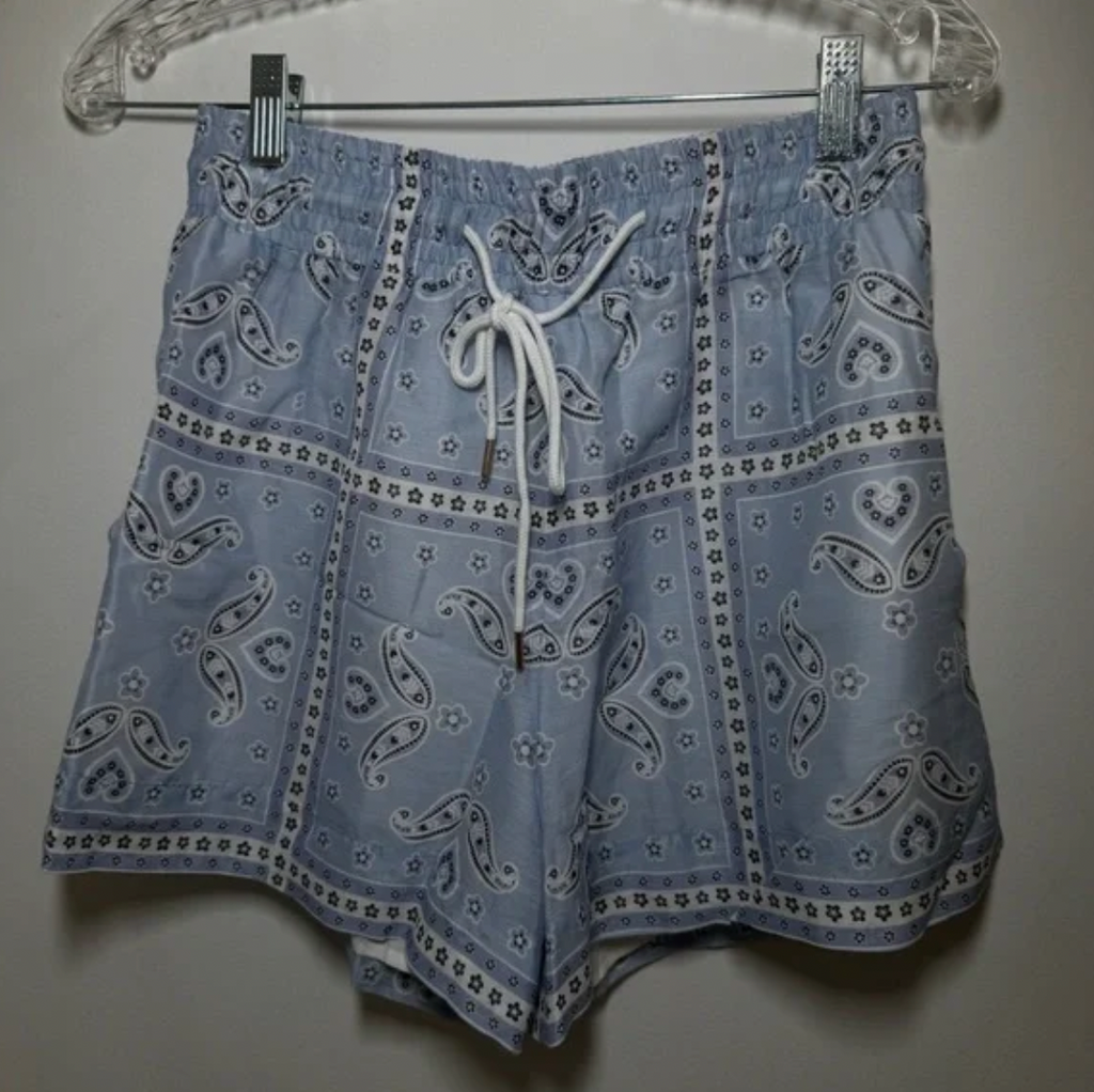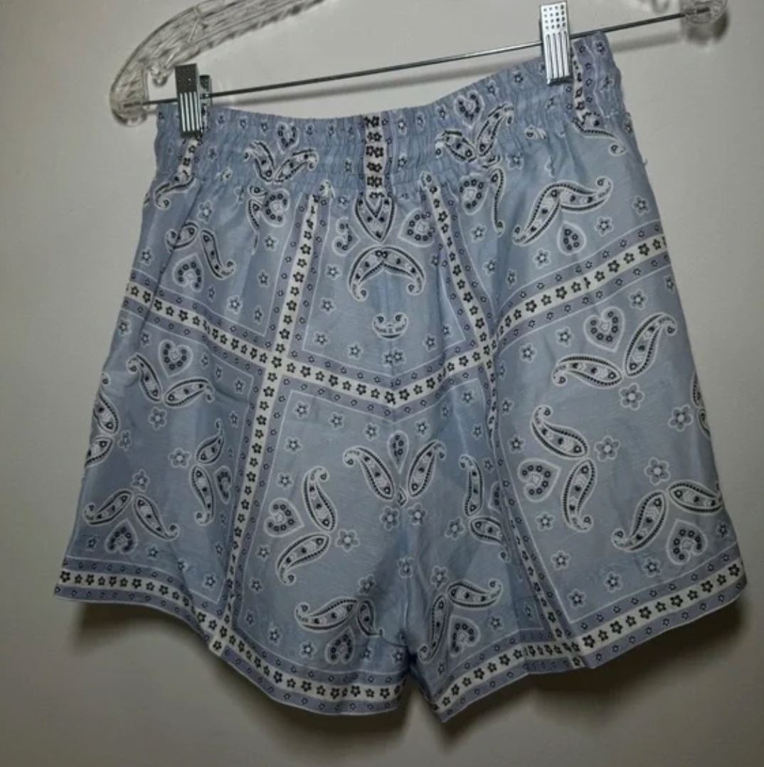 Blue linen blend (62% Linen, 38% Viscose). Lining (100% cotton). Shorts. Pull-on. 3" Inseam. 12.5" Rise. Imported.