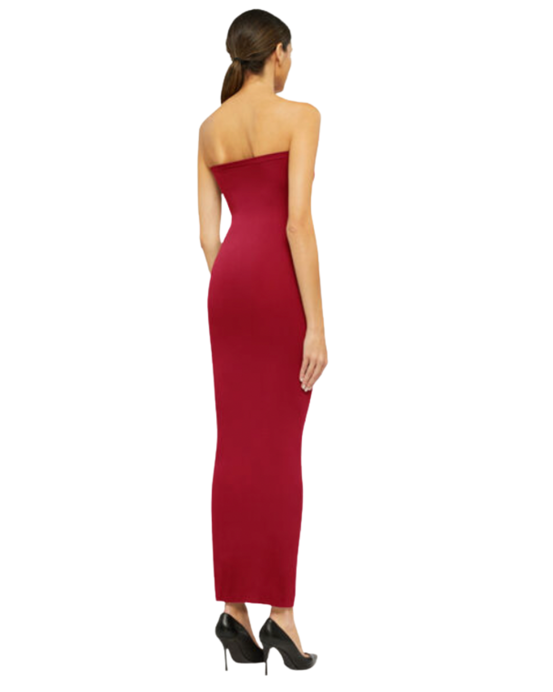 Wolford’s iconic, mat velvet circular knit now incorporates recycled materials. The slim tube dress is soft to the touch, hugging the body with a seamless construction. This versatile piece can be styled to suit any occasion: fold it over to wear it as a top or a skirt, or allow the full-length dress to make its impact.