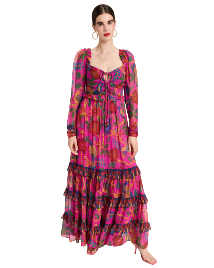 Farm Rio Sweet Forest Tiered Maxi Dress, Small