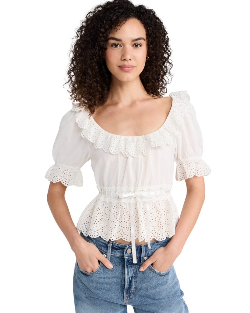 Rixo Elna in Daisy Embroidered Ivory, Small