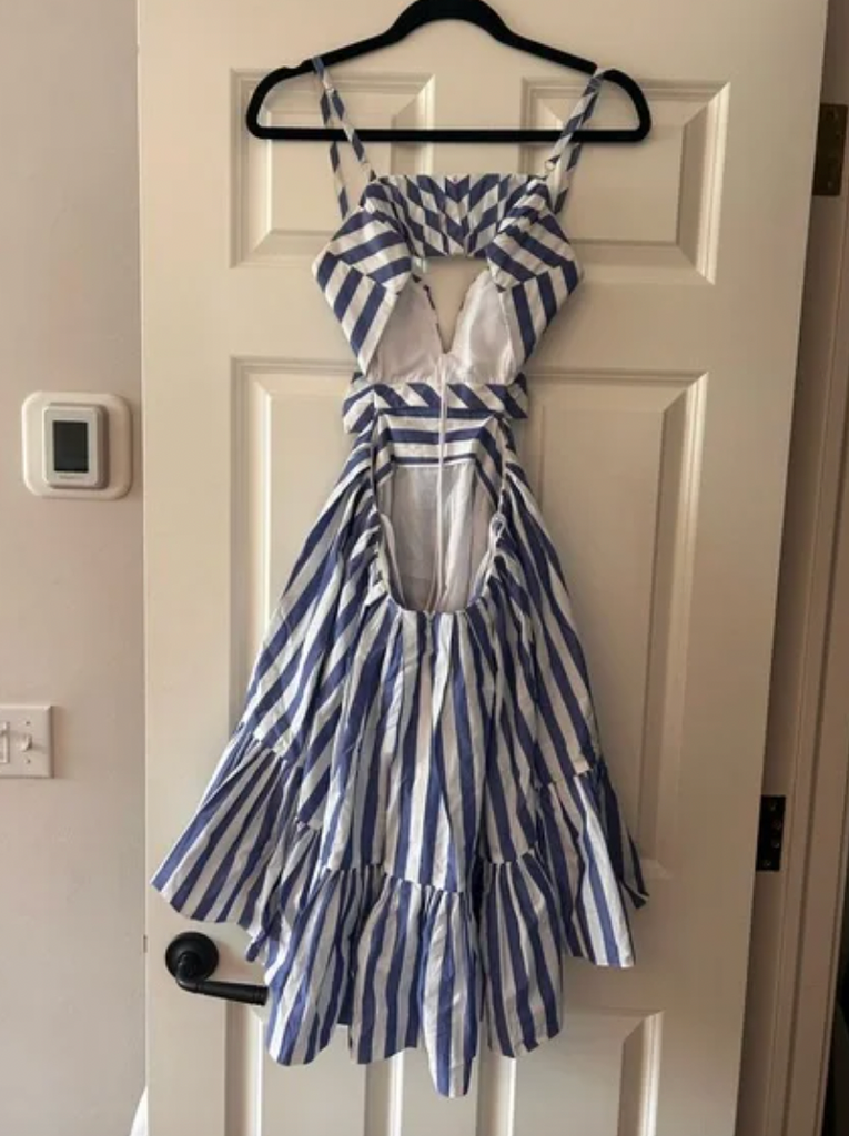Carolina Herrera Stripe Bow Cut Out A Line Dress, 2