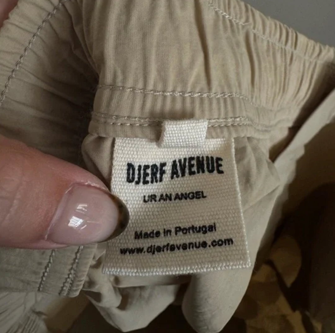 Our Sporty Pants are a loose fitted pair of pants that are perfect when you want a relaxed and comfortable look. They have an elastic waist with a drawstring, button and zipper at the front, side pockets, a Djerf Avenue logo label at the left side seam and a decorative back pocket on the left side. Wear them with your favorite wardrobe essentials!