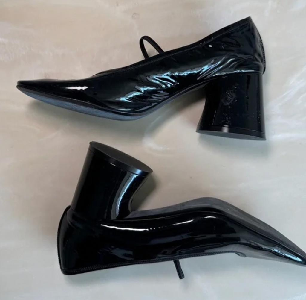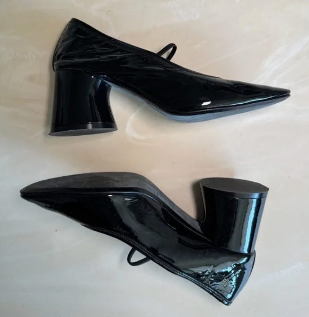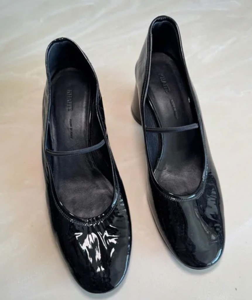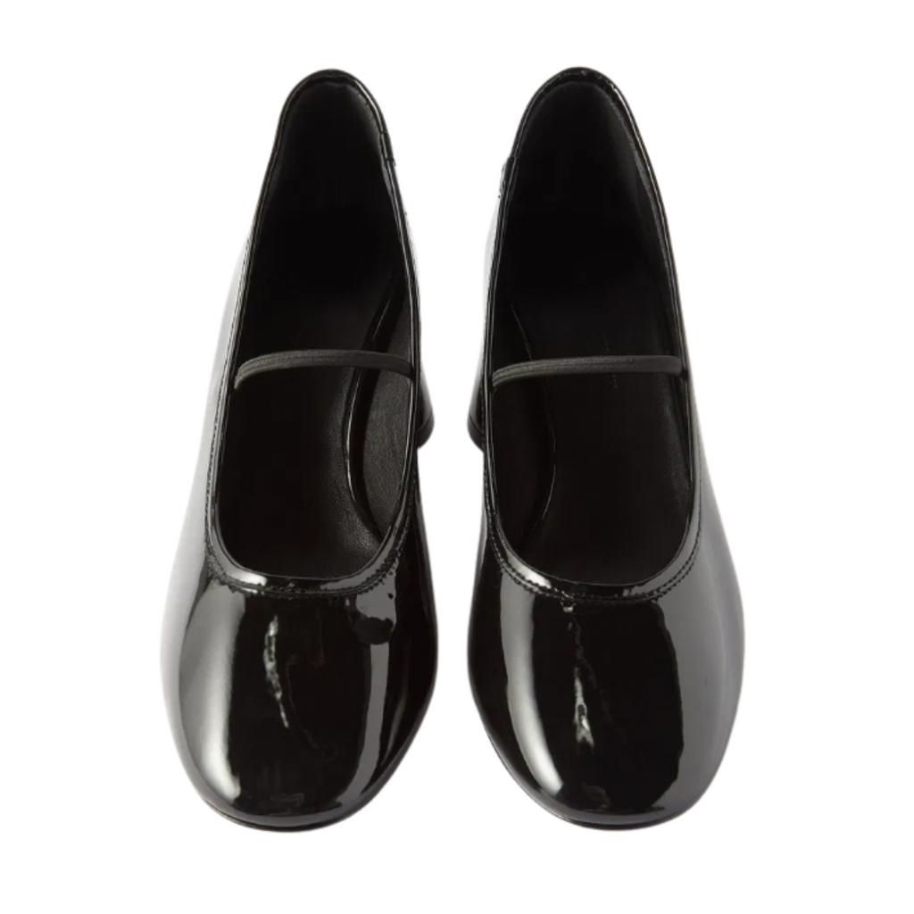 Look to Khaite for contemporary takes on classics – these Lorimer Mary Jane pumps are crafted from glossy black patent leather with a chunky block heel.