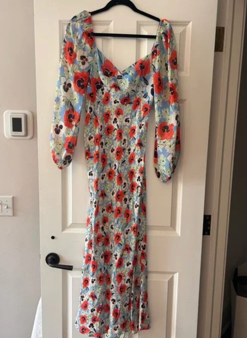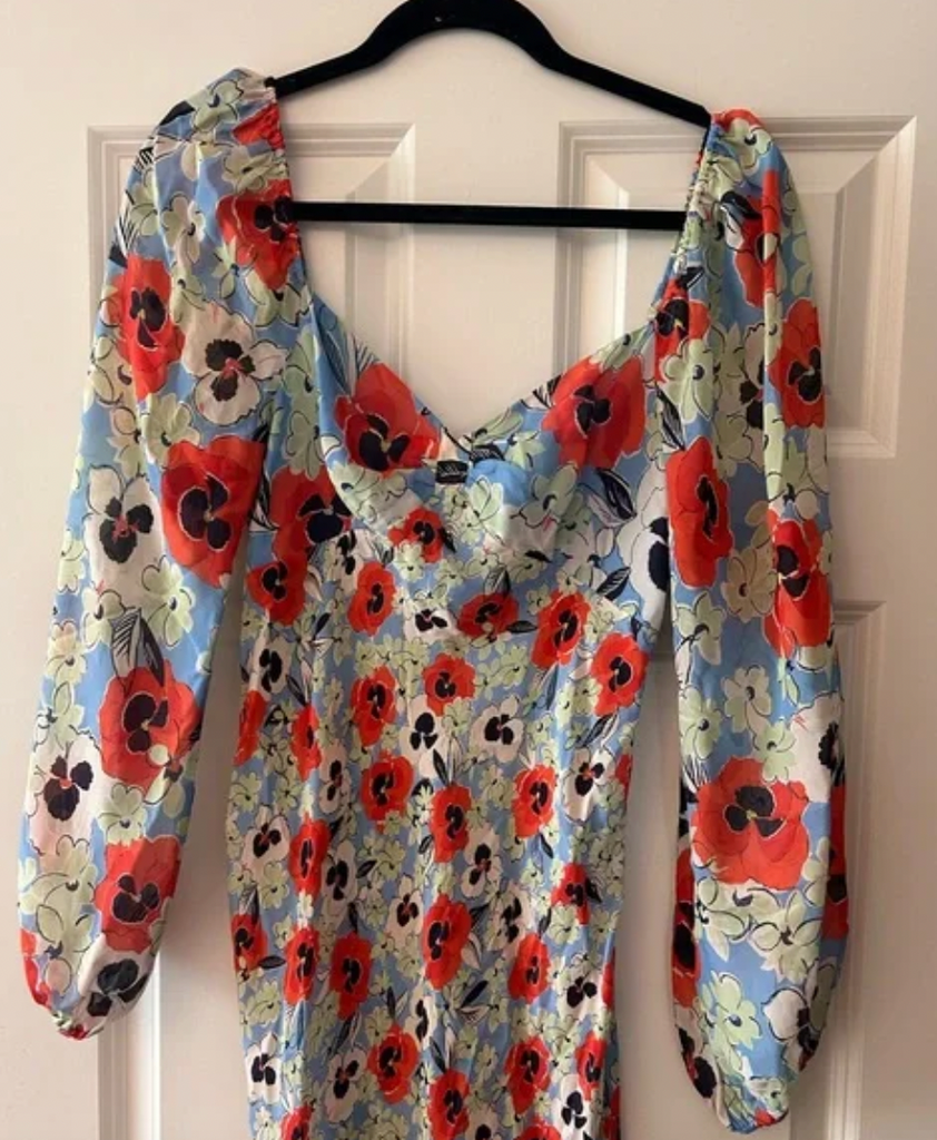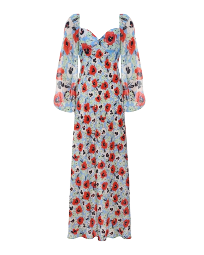 If you're stuck on what to wear for your next evening event, the RIXO Gio Pansy dress is the perfect option. The RIXO dress is super feminine and flattering as it has been crafted from pure silk and cut to a midi length. With loose sheer sleeves, elastic to the shoulders and a floral pattern all over, style yours with simple heels and a luxurious bag for the ultimate outfit.