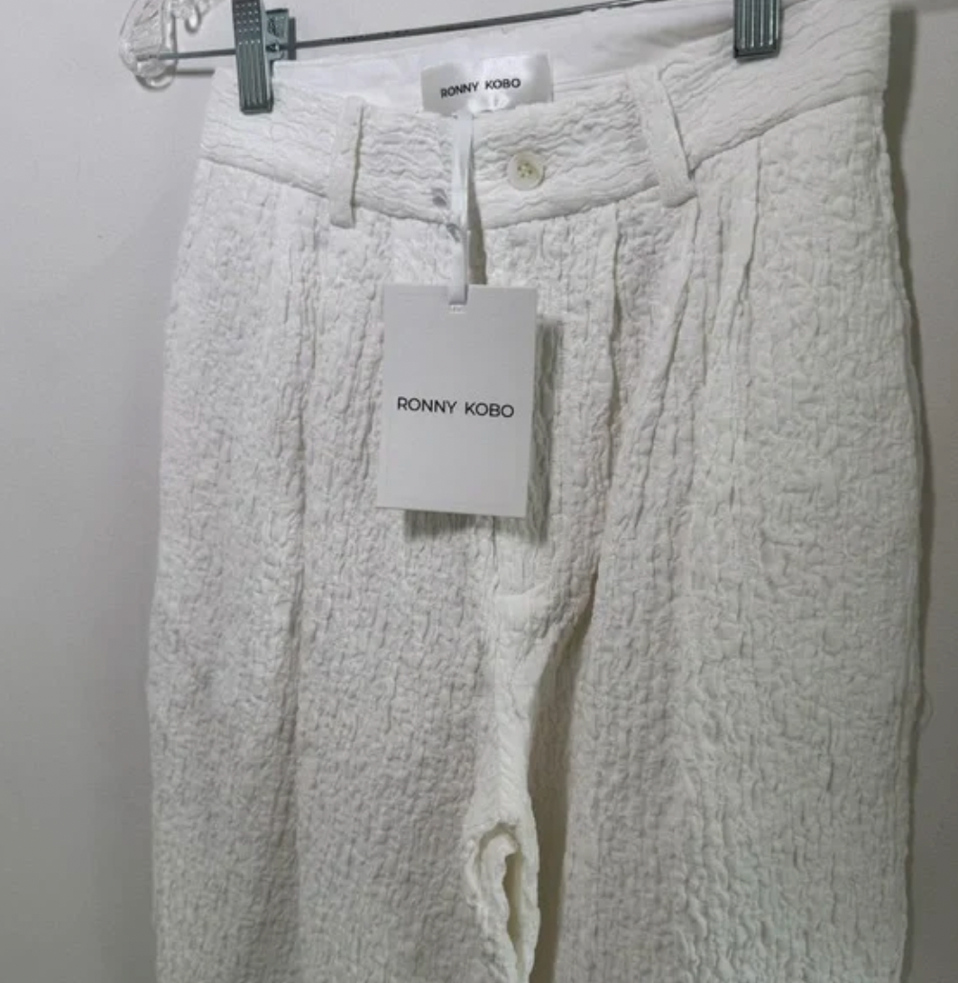 - Crafted of crinkled stretch cotton, the Krew pants by Ronny Kobo are cut in a straight-leg silhouette with pleating for shape.