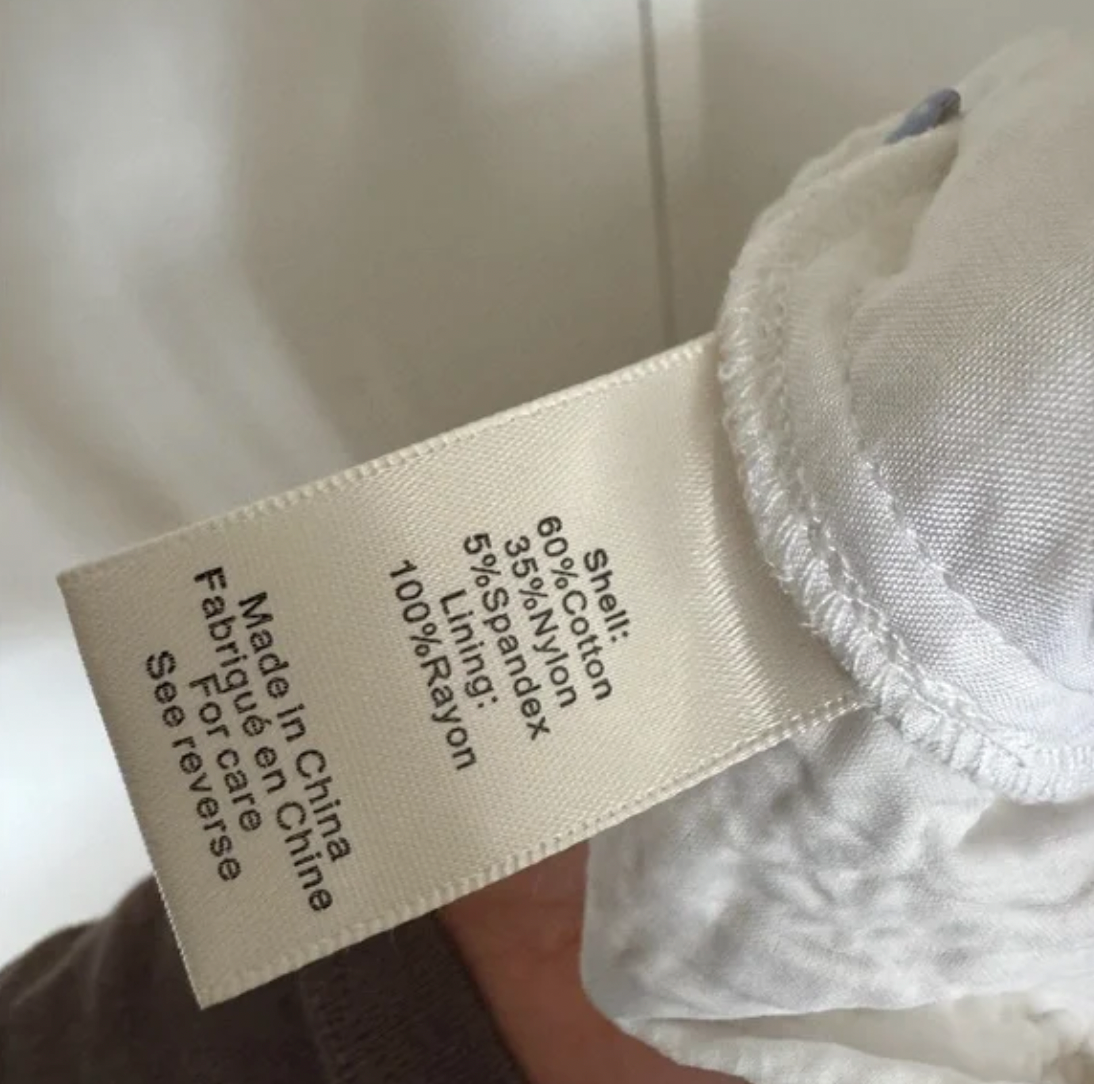 - 60% cotton/5% nylon/5% spandex