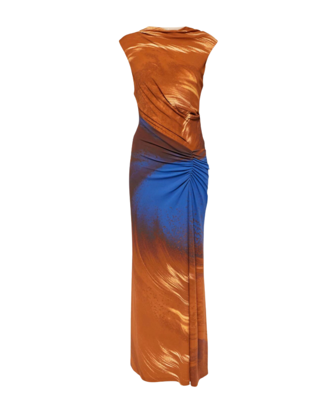 Designed with a slim fit and ankle length. Waist may feel snug due to ruching. Slinky jersey has a smooth hand and fluid drape.