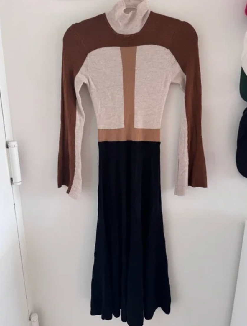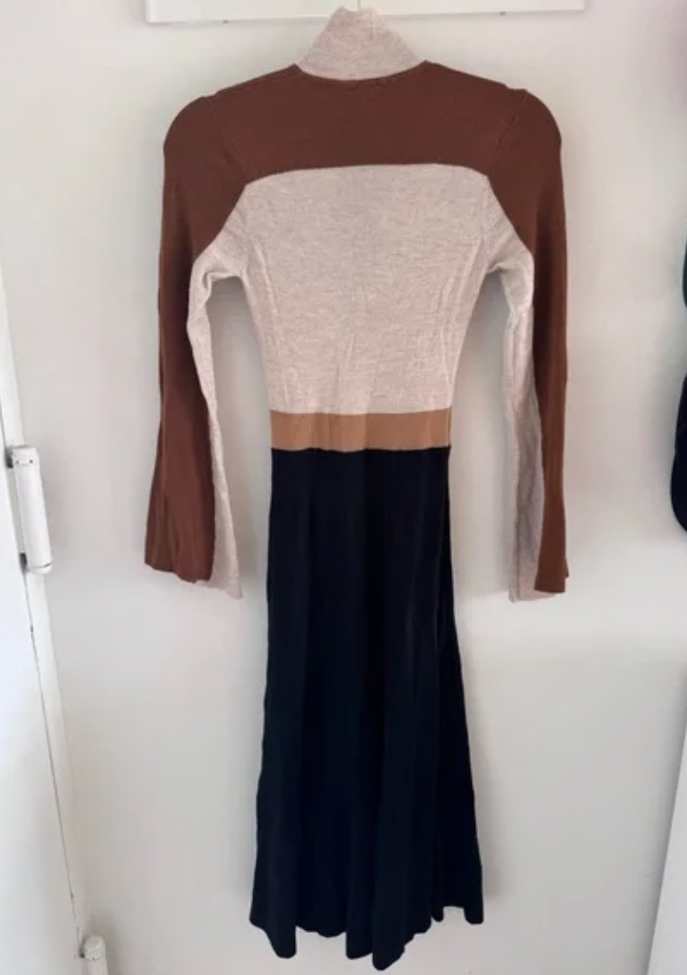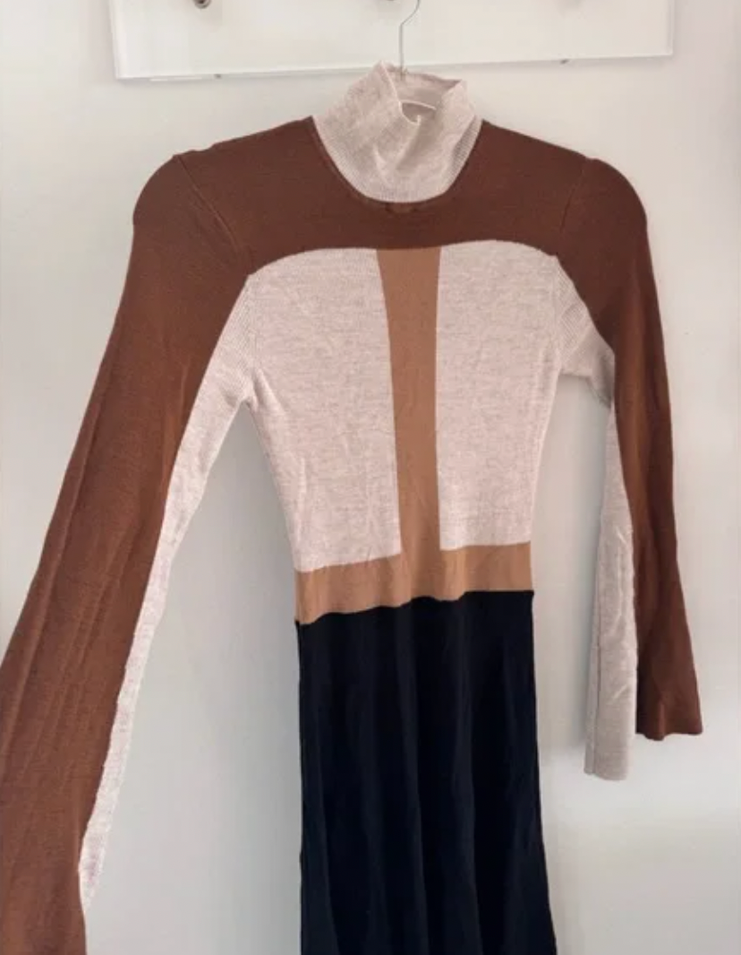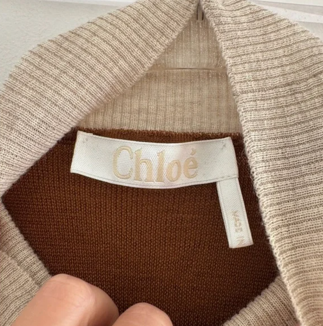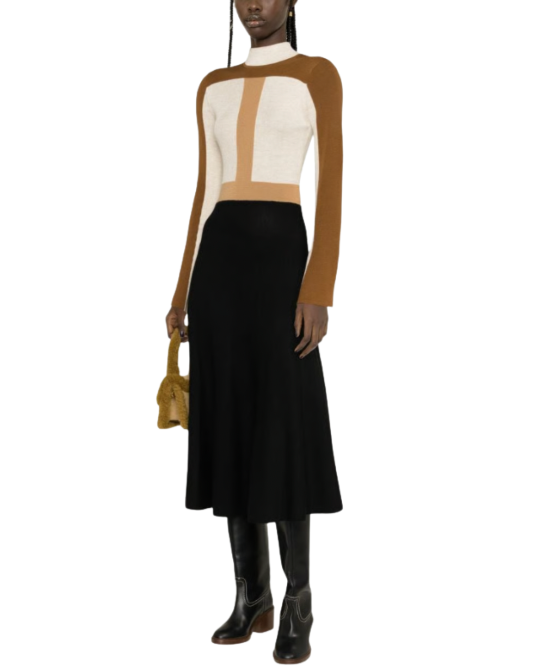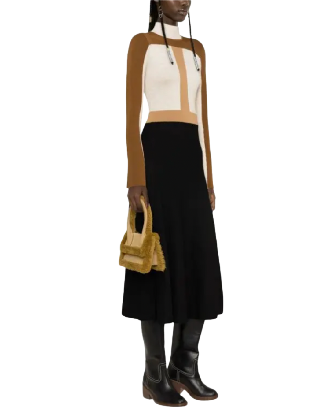 - Chloé's brown color-block knitted wool dress for women features a blend of neutral tones and is part of their knitwear collection.