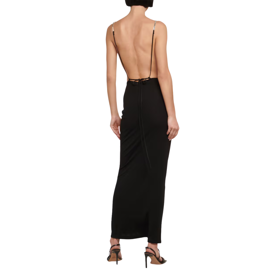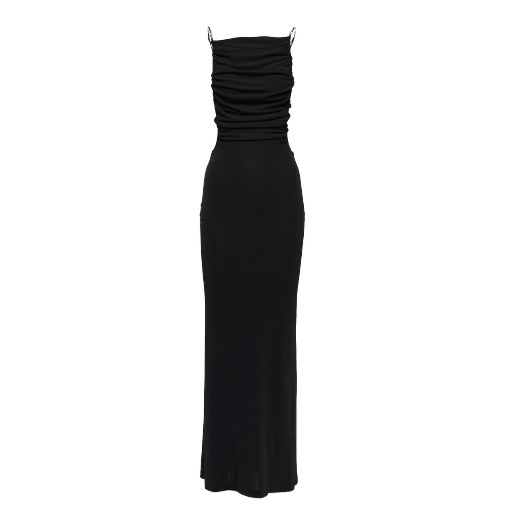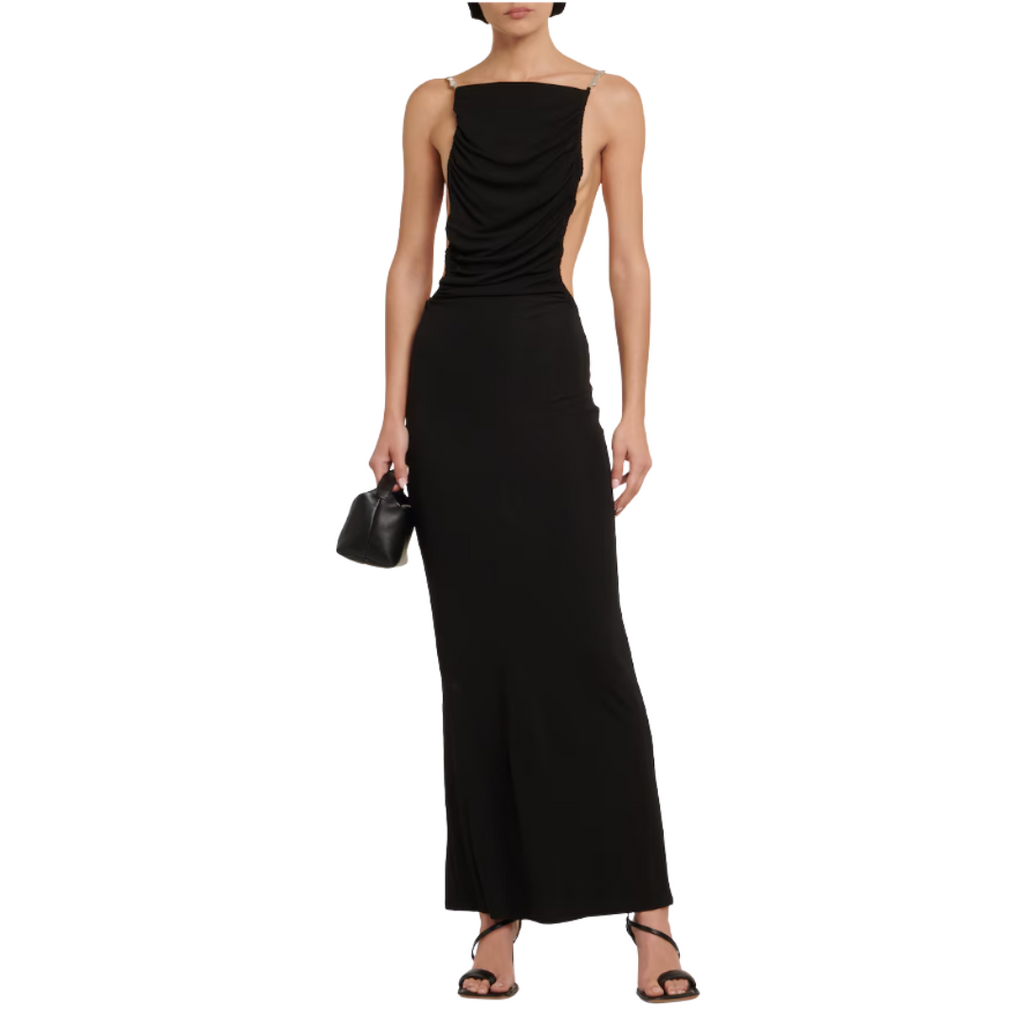 Christopher Esber's contemporary vision – often involving striking splicing – shapes the modern woman's wardrobe. This slinky jersey maxi dress has a ruched top, handmade strap hardware, and a cutout back.