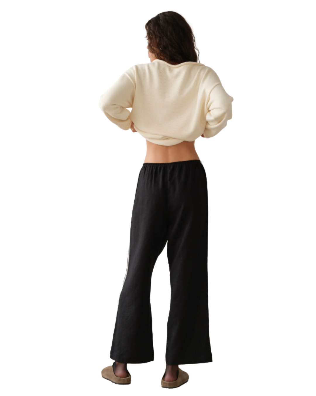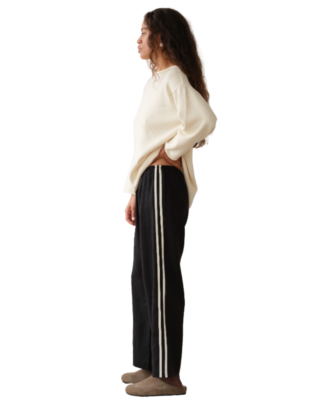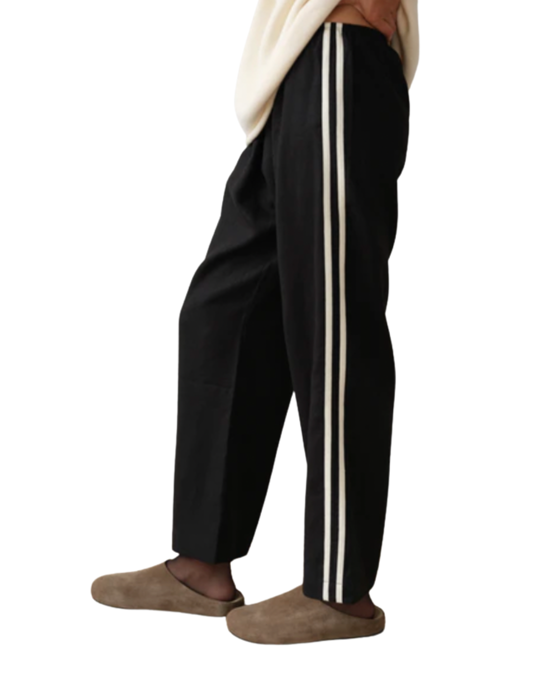 Designed with a cropped fit, comfortable elastic waistband, straight-leg cut, and finished with racer stripes along each leg.