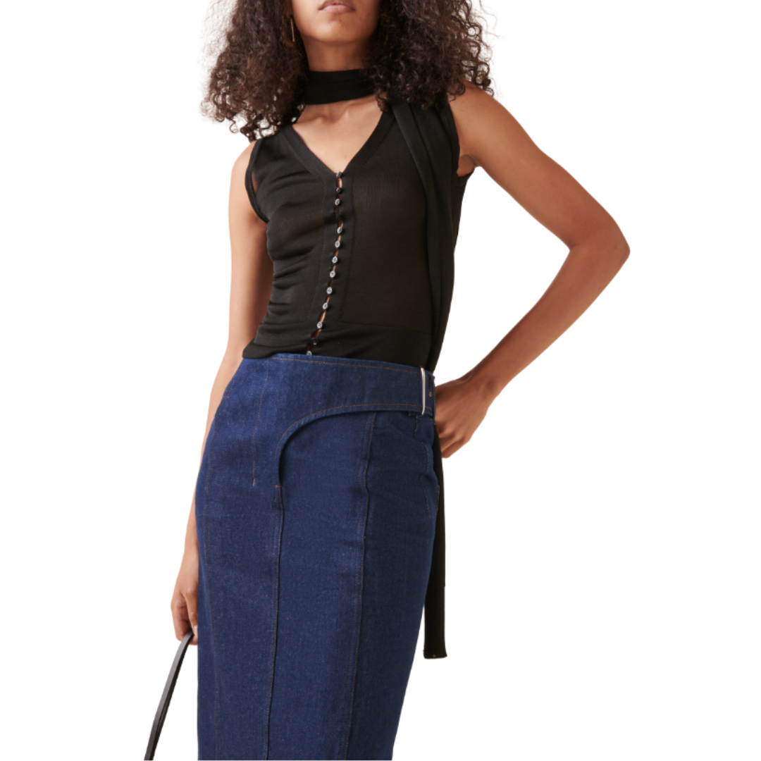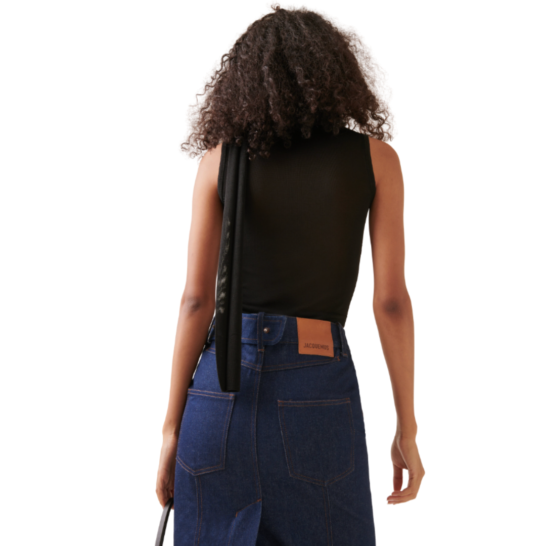 Titled 'Les Sculptures'; Simon Porte Jacquemus delivers a powerful collection for Spring '24 imbued with nonconventional wearability. The 'Maestra' top is made from slinky viscose into a sculpting corset silhouette detailed with a sash-tie neckline that be worn draped or fastened. Style yours with a sleek maxi skirt for an evening edit.