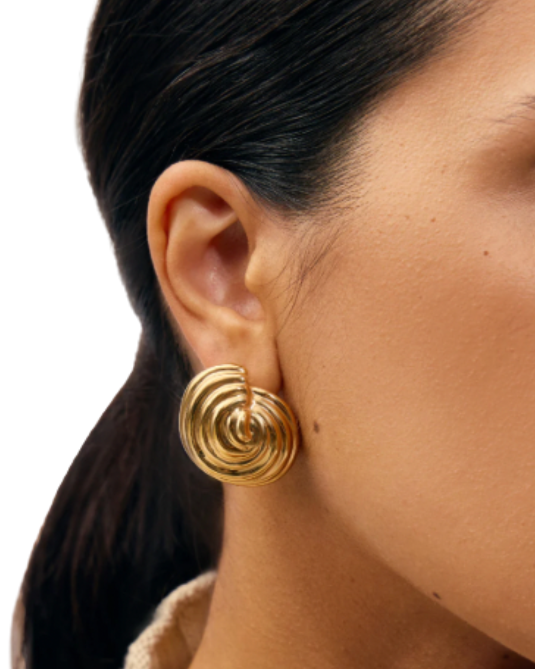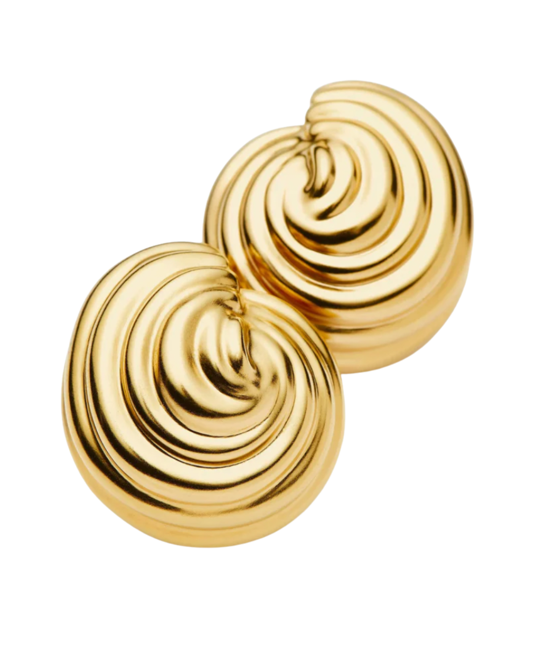 These large statement oceanic-inspired stud earrings feature a three-dimensional domed spiral shape for a voluminous effect.