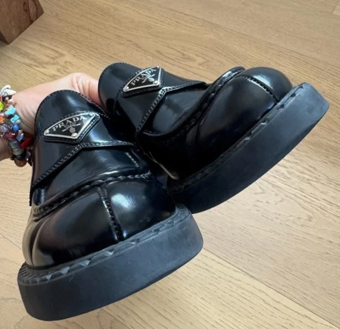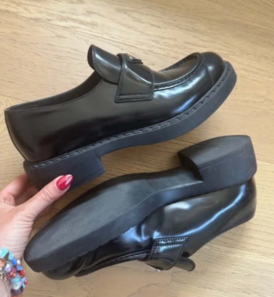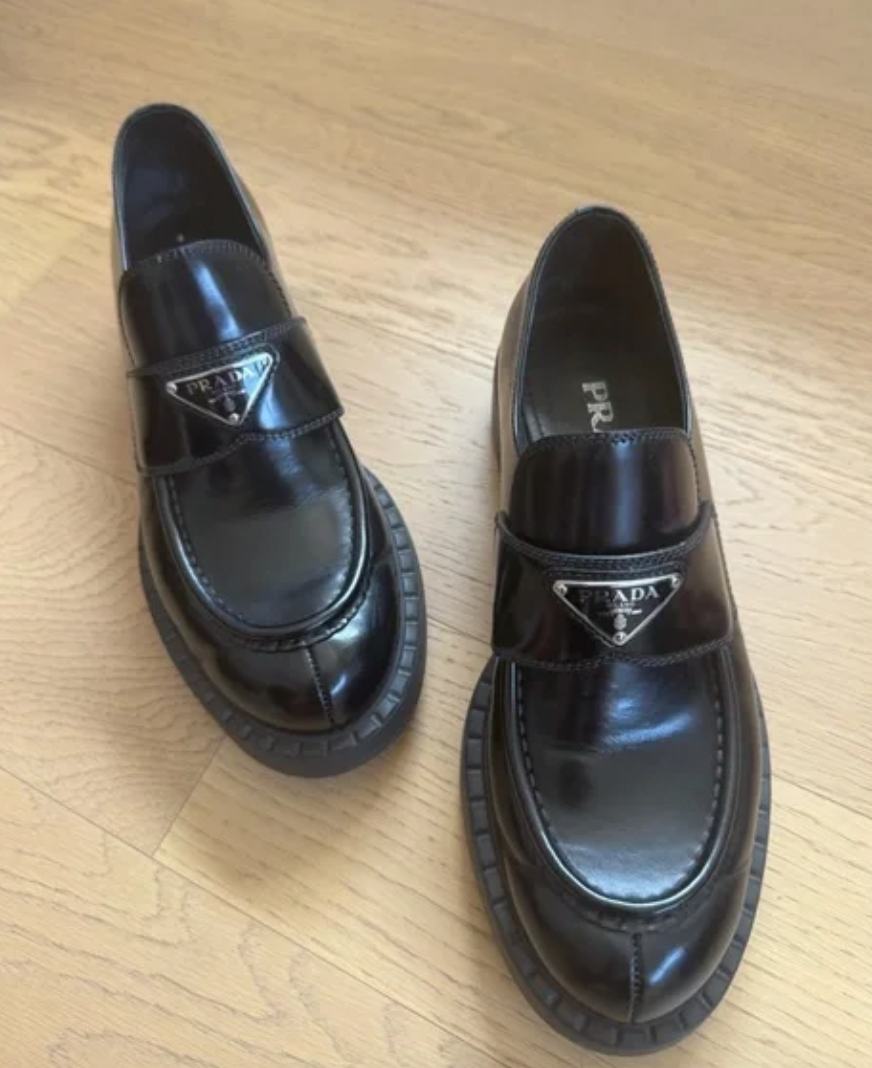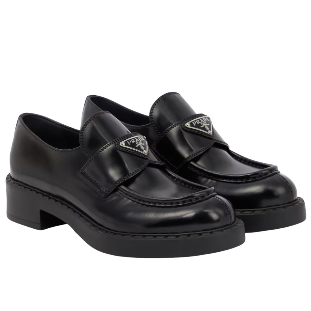 Trust Prada to present a pair of loafers that somehow speak to both the past and present at once. Made from polished leather and set on platform soles, these topstitched loafers feature the triangle logo that has formed a part of fashion history forever.