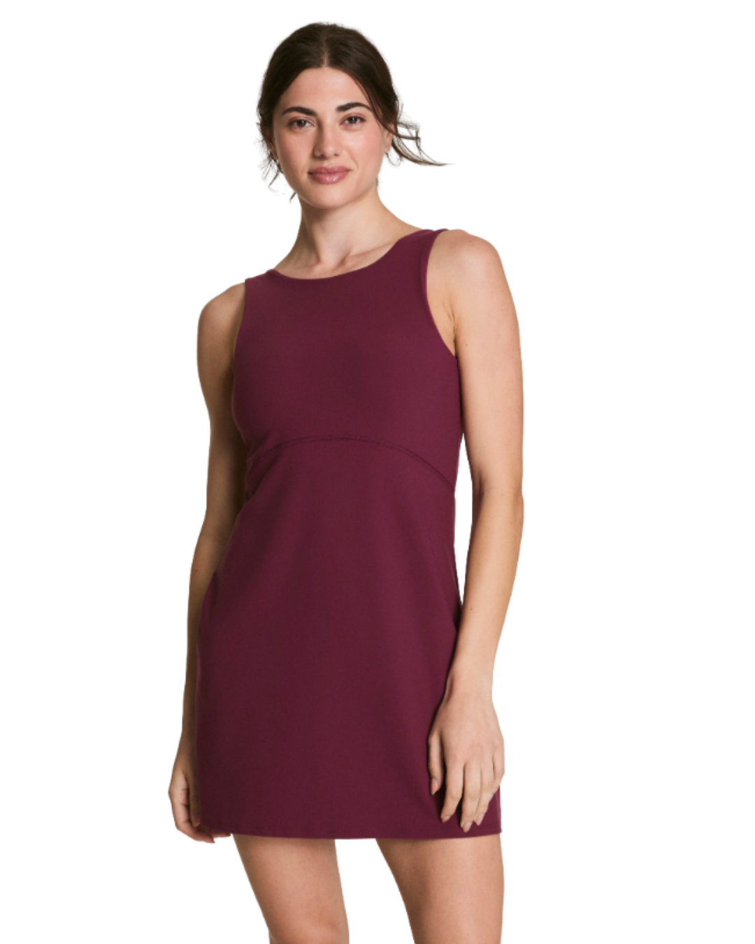 The SPANXsmooth™ OnForm Tank Dress is made from buttery-soft, lightweight performance fabric with gentle smoothing built in. This versatile dress features a built-in smoothing bodysuit with shelf bra and removable cups for customizable support, our patent-pending Take Off Technology for easy bathroom breaks, and hidden side pockets for your phone — all designed with dig-free tank straps and available in plus sizes. Breathable, sweat-wicking, and crafted with 4-way stretch, this A-line silhouette is perfect for before, during, and after your low-intensity workouts like Pilates or yoga.