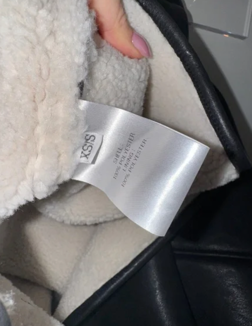 - Smooth faux leather fabric with shearling