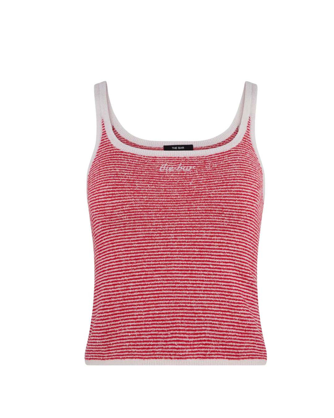 Meet our Carter Sweater Tank. Slightly cropped and finished with red and white stripes, this is a wear-on-repeat kind of piece. Pair it with our Carter Summer Sweater Pant > we love a set.