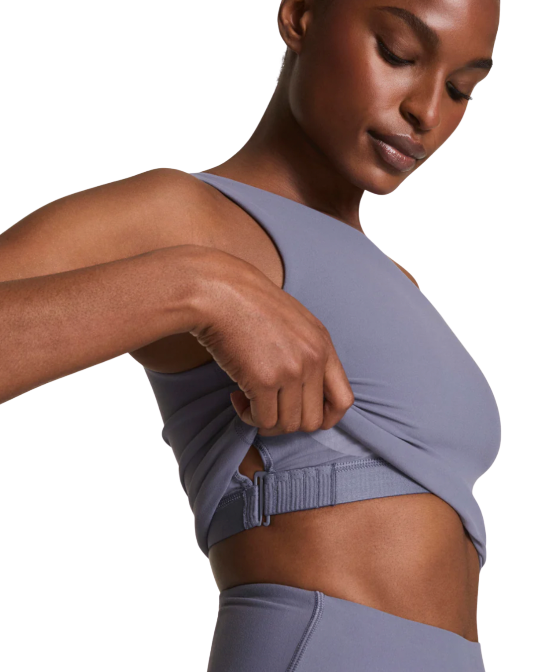 The SPANXsmooth™ OnForm Asymmetrical Tank is made from buttery-soft, lightweight performance fabric with gentle smoothing built in. This fitted tank features a modern asymmetrical neckline design and an adjustable shelf bra—with removable cups—for a personalized fit. Breathable, sweat-wicking, and crafted with 4-way stretch, this versatile piece moves with you and is perfect for before, during, and after your low-intensity workouts like Pilates or yoga.