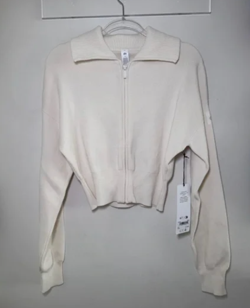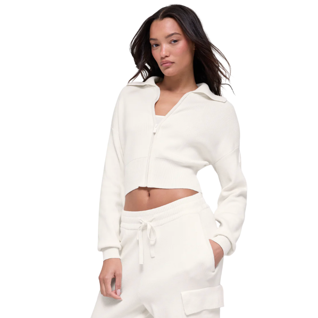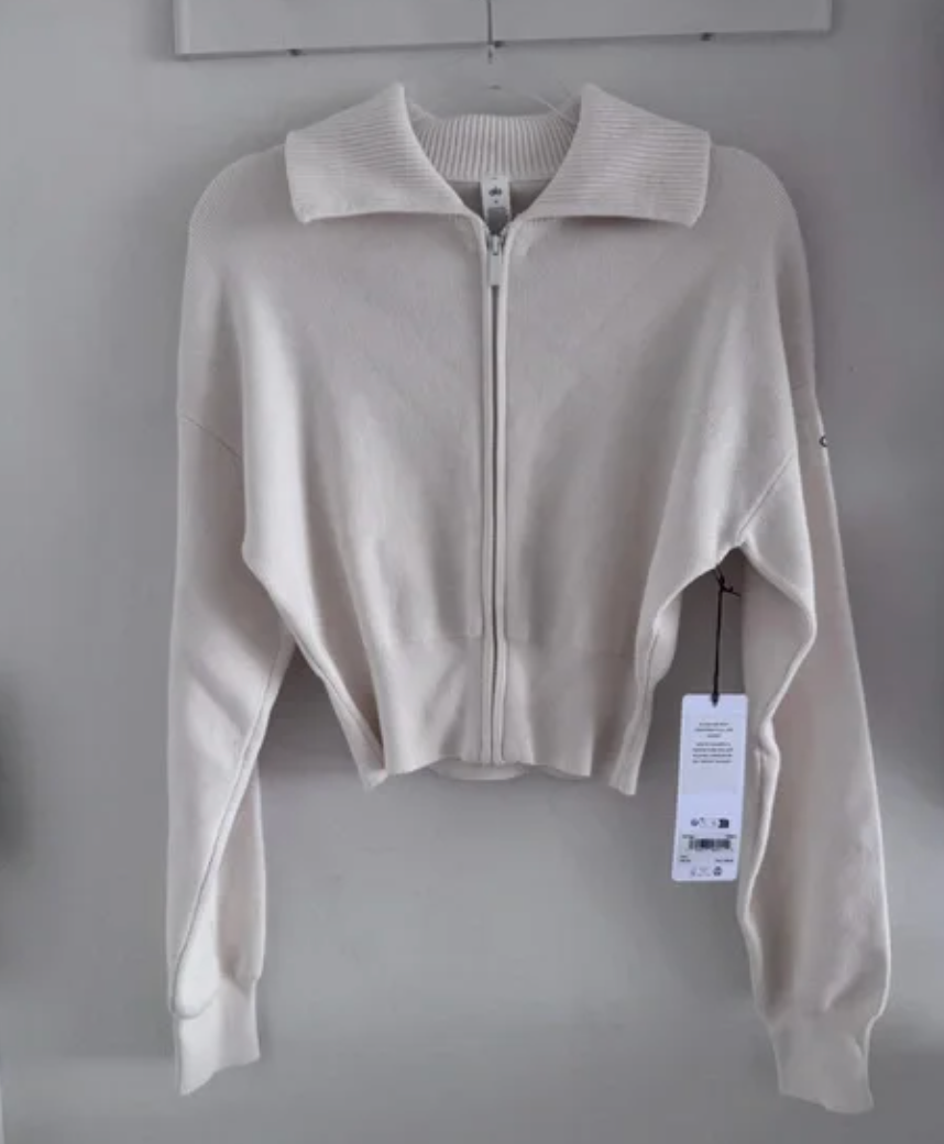 Alo Scholar Knit Cropped Full Zip Jacket, Medium