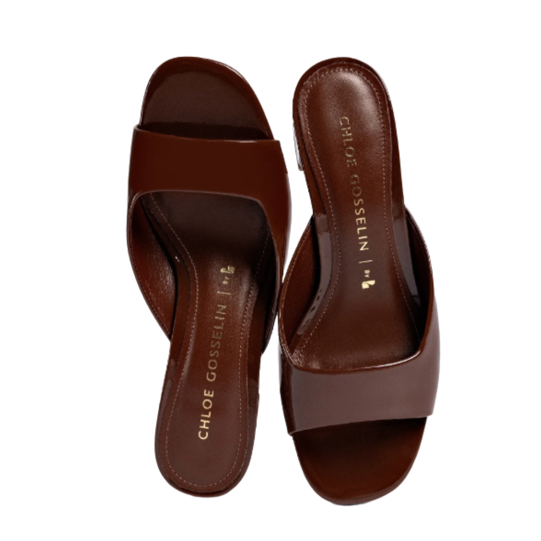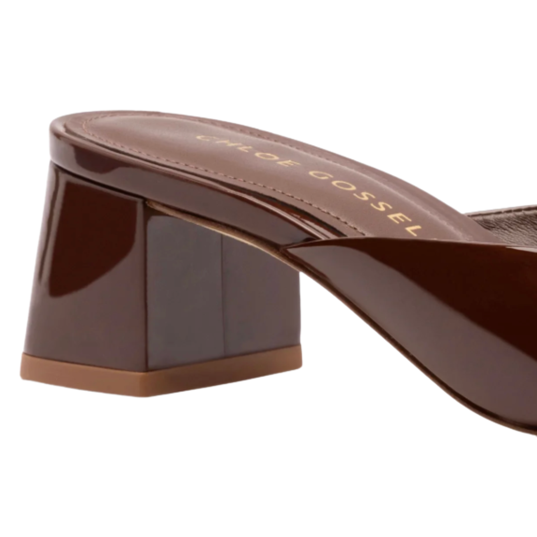 Part of our new concept, this Chloe Gosselin by Studio Larroudé classic block heel sandal takes cues from the designer's singular aesthetic. Elegant in their simplicity, this classic patent leather silhouette is a timeless closet staple.