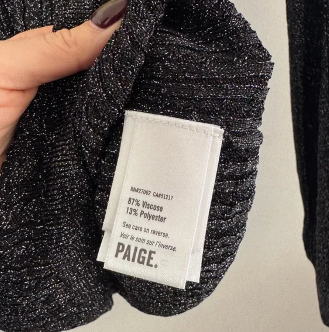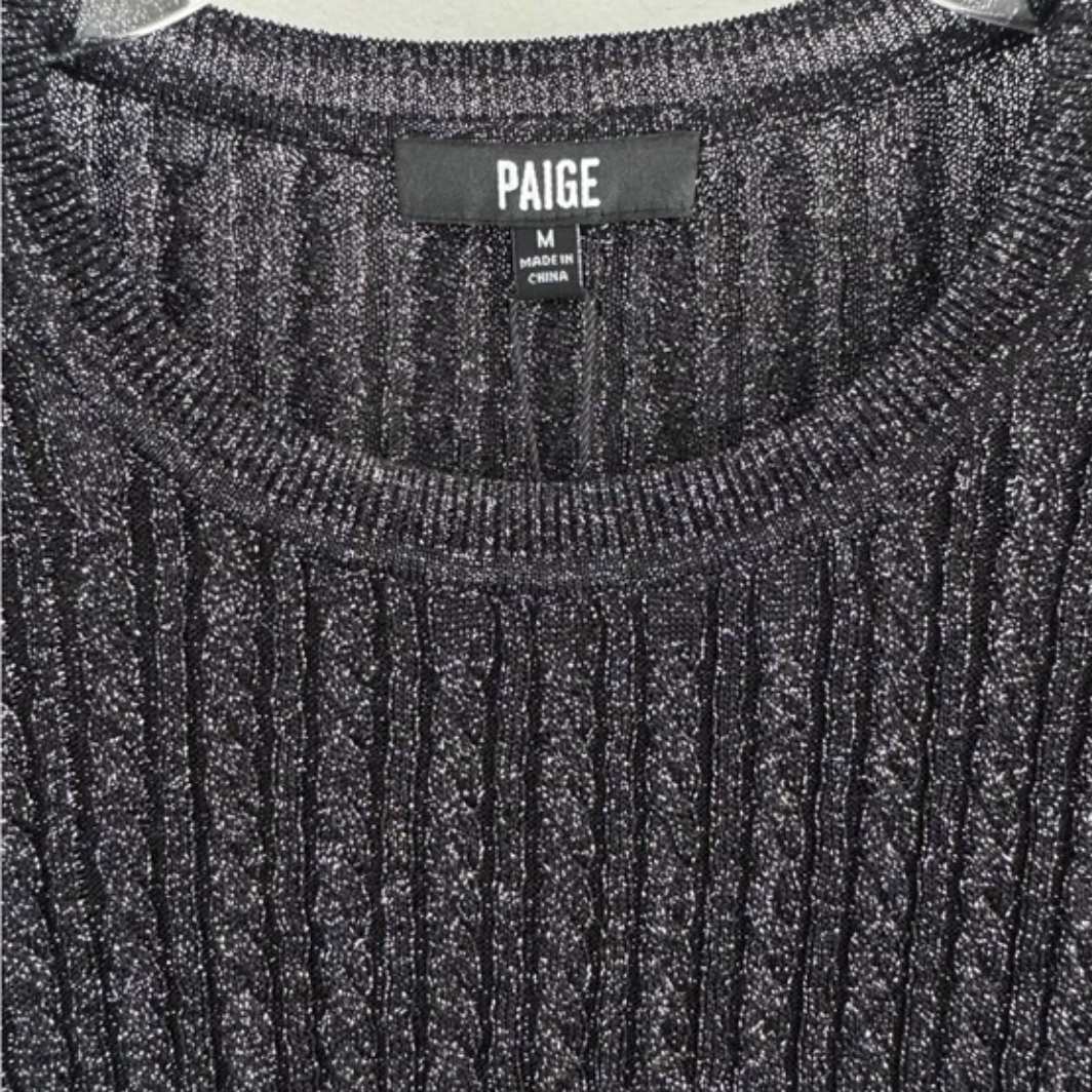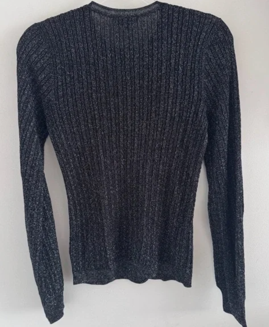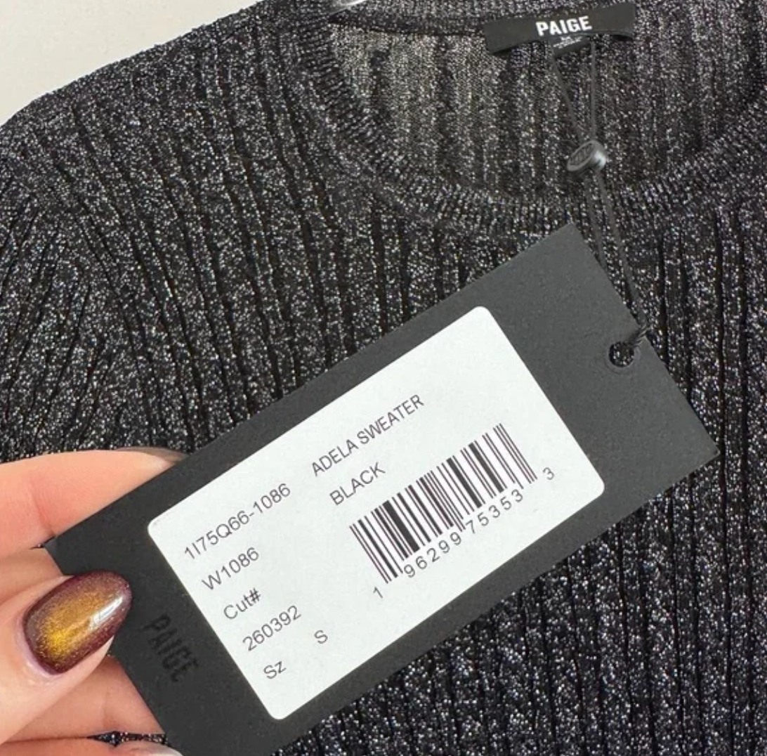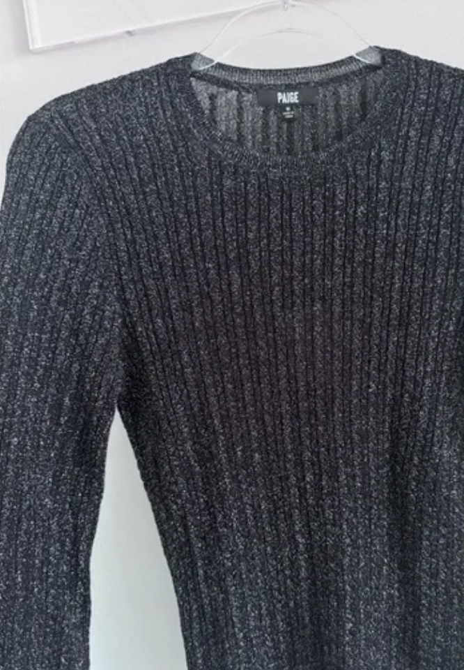 Add a touch of shimmer to your wardrobe with the Adela Sweater. Crafted from a black slinky sparkle yarn, this style is designed with a mini cable rib stitch, a classic crew neckline, and a flattering fit that's perfect for tucking into denim or skirts.