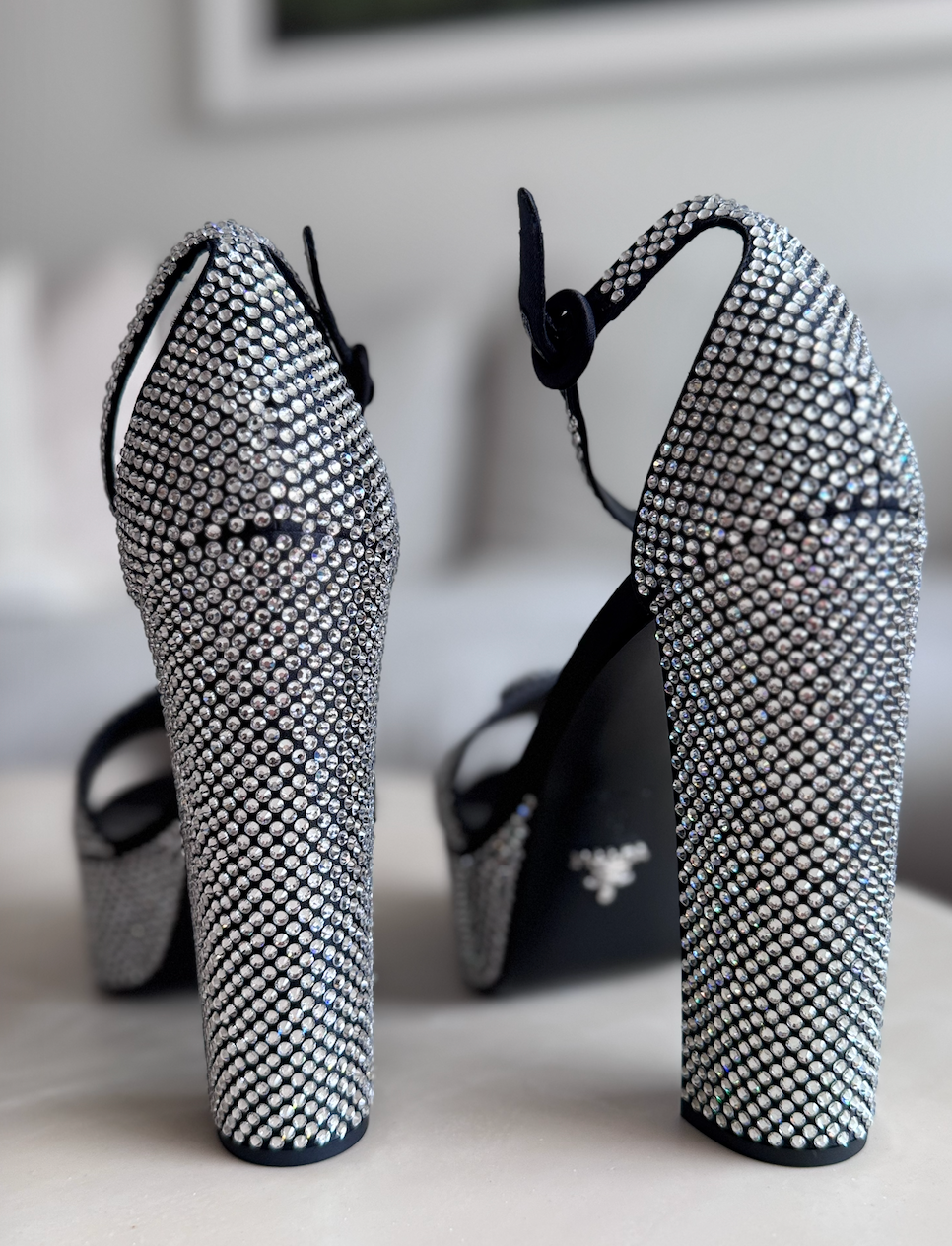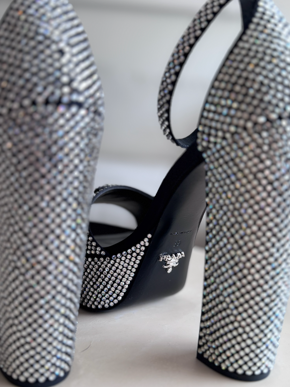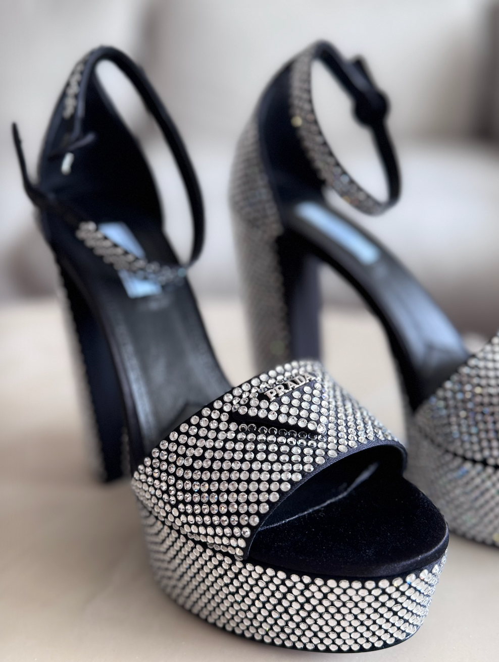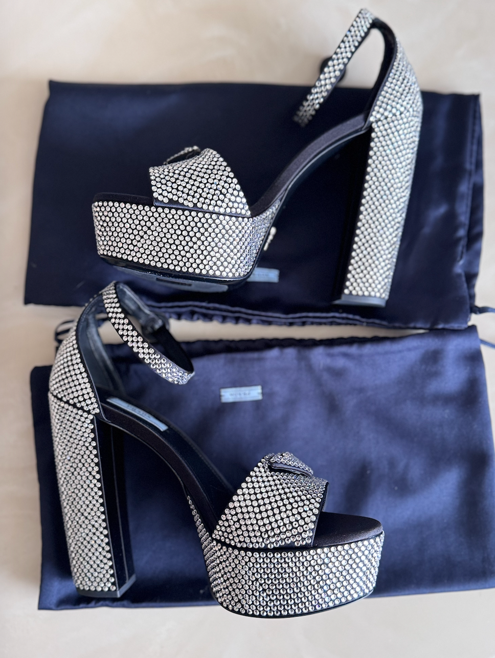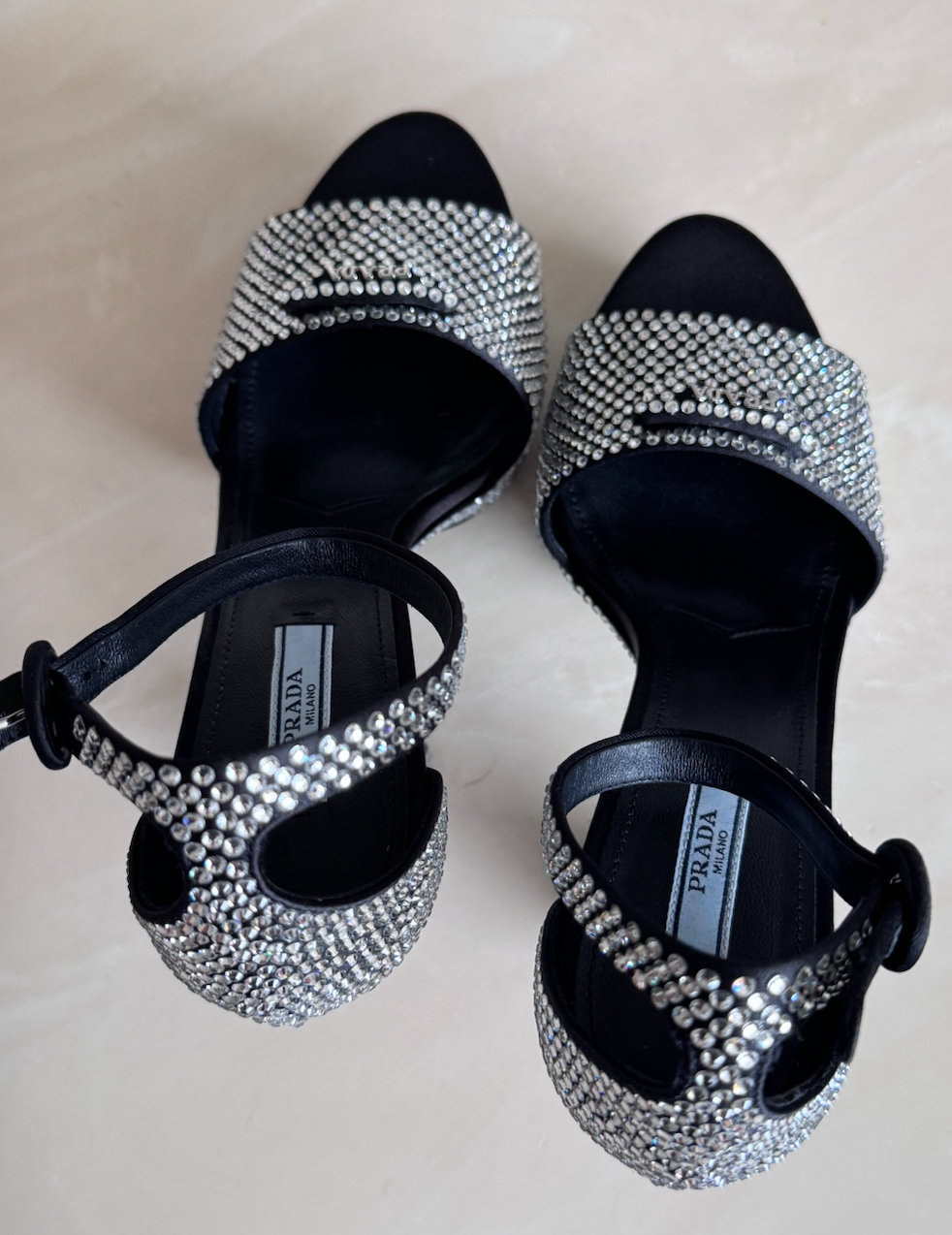 Prada Crystal Embellished Satin Platform Sandals, 39
